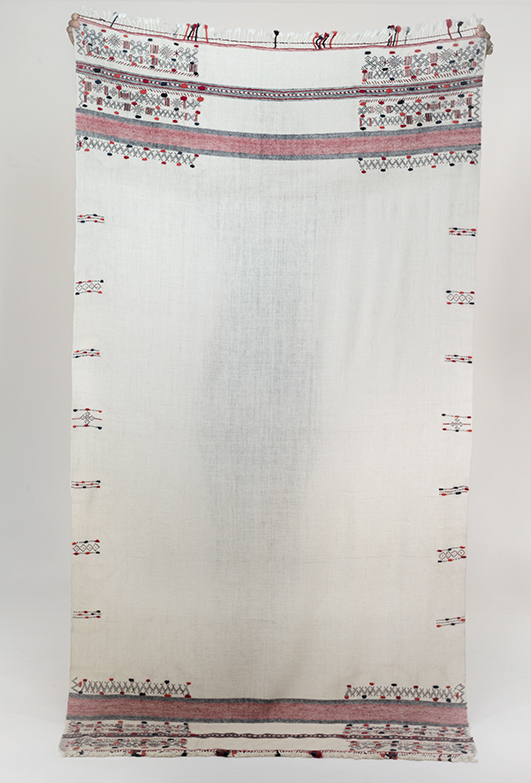 AFAGGOU SHAWL IN NATURAL IVORY WITH REDS & BLUES