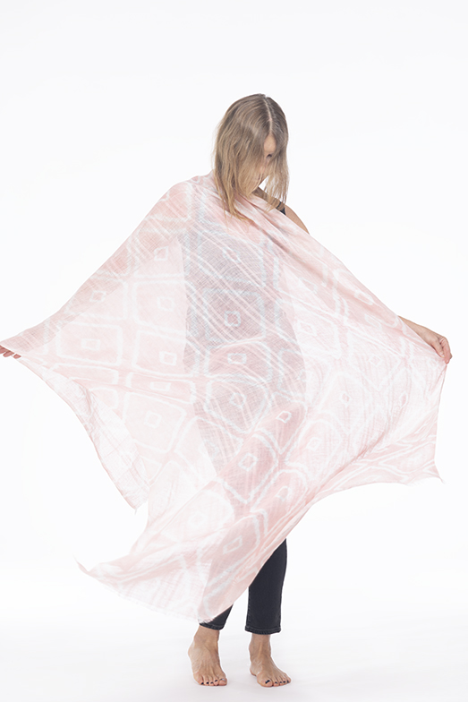 - LINEN EL MELHFA PINWHEEL SHAWL IN BUBBLEGUM & IVORY 100% LINEN, HAND TIE DYED