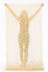 - LINEN EL MELHFA HONEYCOMB SHAWL IN CURRY & IVORY 100% LINEN, HAND TIE DYED