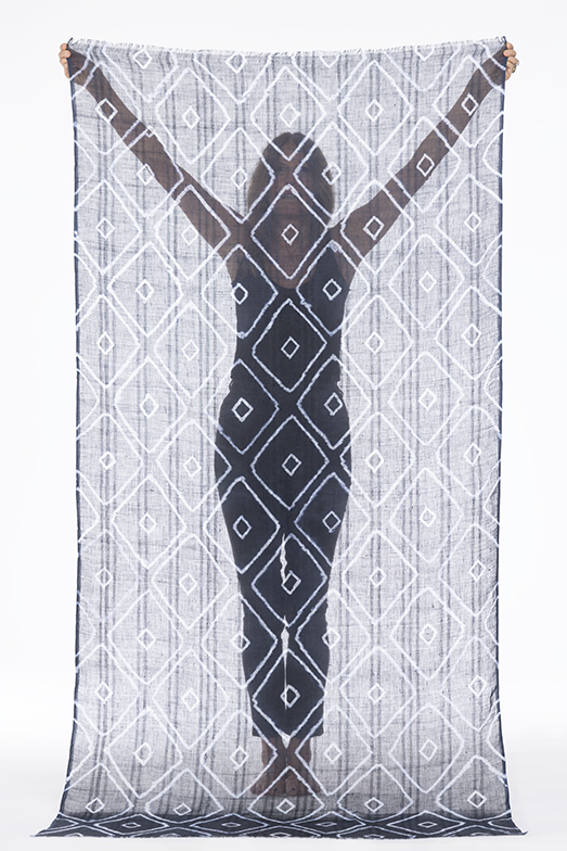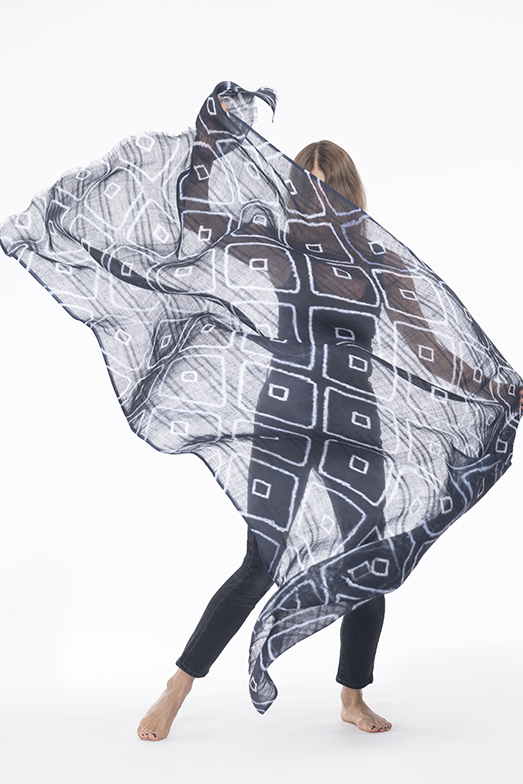 - LINEN EL MELHFA SPIDERWEB SHAWL IN BLACK & IVORY 100% LINEN, HAND TIE DYED